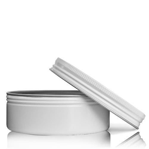 Transform the look of your product and house your product in one of our new white aluminium jars! Both lightweight and durable and looks stunning. A small jar shallow in height, the outer is sprayed white whilst the interior of the jar still maintains the coated aluminium look. The jar comes with matching screw lid with EPE liner making these jars suitable for water, oil and solvent based products.