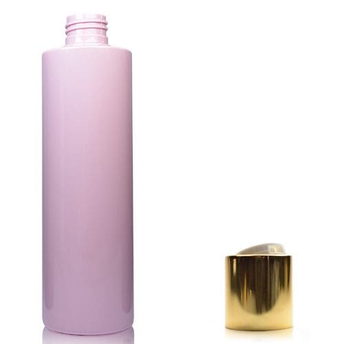 250ml Pink Plastic Bottle With Gold Disc Top Cap