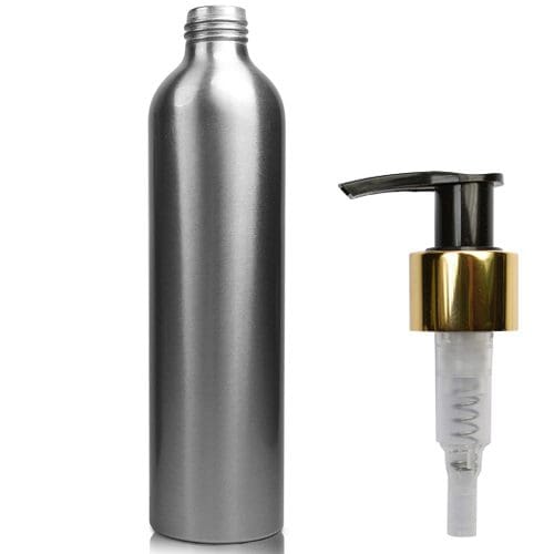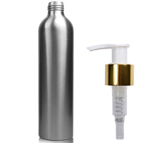 300ml Brushed Aluminium Metal Bottle With Gold Lotion Pump