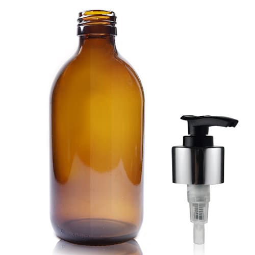 300ml Amber Glass Syrup Bottle & Premium Lotion Pump