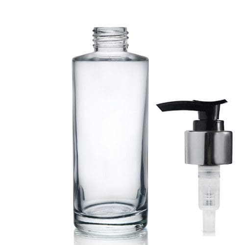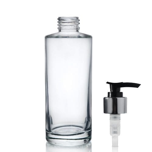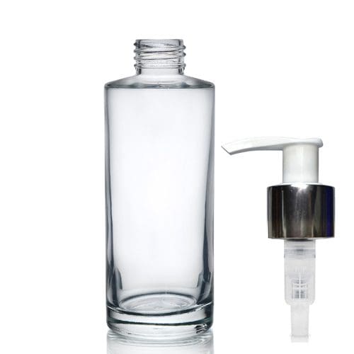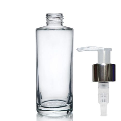 150ml Clear Glass Simplicity Bottle & Silver Lotion Pump