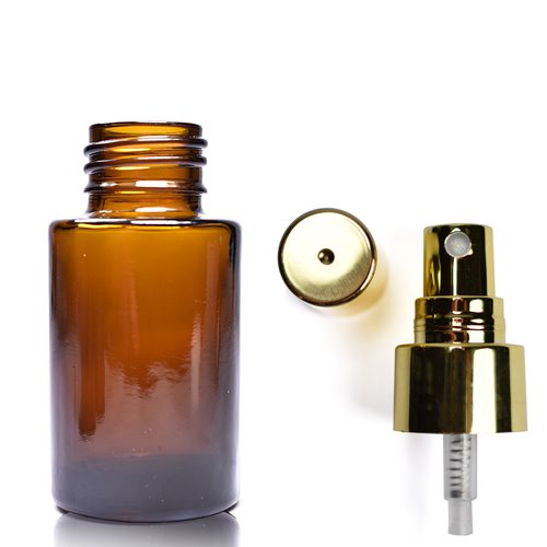 30ml Amber Glass Simplicity Bottle With Gold Atomiser Spray