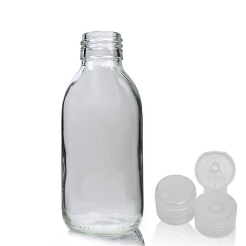 Our 150ml Clear Glass Sirop Bottle With Flip Top Cap is the perfect bottle for pharmaceuticals, chemicals and syrups. If you want to think outside the box, juice, cordials and flavourings are also suitable. Each bottle can be easily branded to enhance the look. If your products require warnings or product information this is easily achieved with this combination. Glass bottles are food safe so the sky is the limit!
