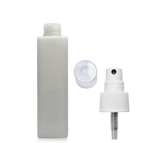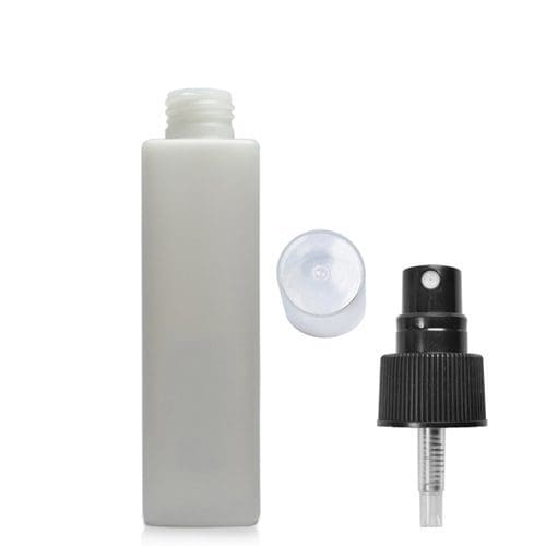 150ml Square Plastic Spray Bottle, made from quality High-density polyethylene (HDPE) which is known for its excellent moisture barrier and therefore perfect for bath and beauty products. Being lightweight and impact-resistant makes this bottle a great choice for online businesses looking to reduce transport costs and breakages. The natural (semi-transparent) nature of the bottle gives the end-user an indication to the product colour within. Whilst disguising slightly less attractive product colours.