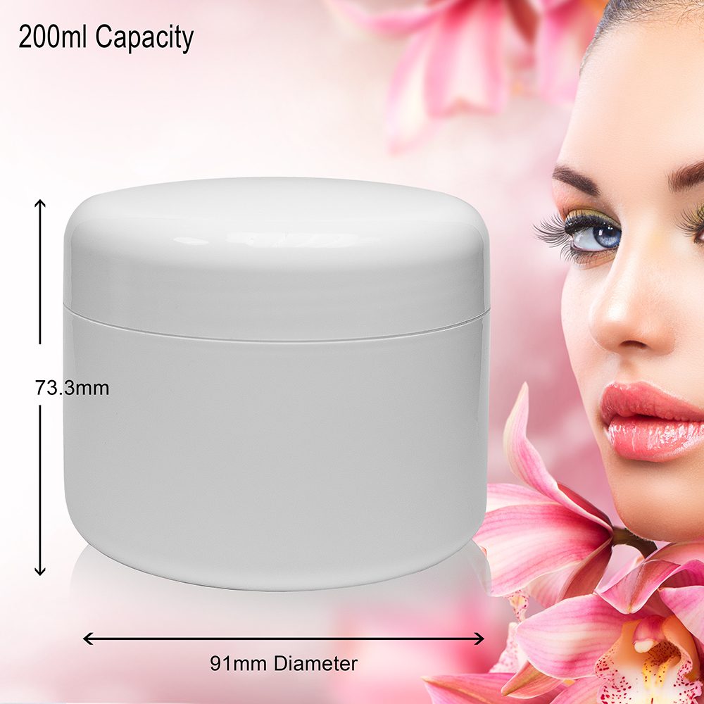 The glossy white plastic is great for giving the overall finish of your product a high-end professional look! Great for housing hand, body and face creams, anti-wrinkle creams, gels and treatments. Perfect for hair treatments and conditioners. This 200ml White Plastic Cosmetic Jar is the largest in our range of double walled Arese Jars. You can offer your customers a full range of sizes at different price points based on your needs. Additionally, you can diversify your product range and packaging on a product by product basis.