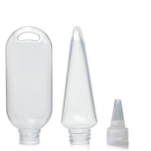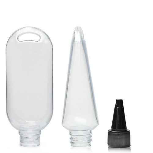 50ml Clear PVC Tottle Bottle, Clip & Spout Cap