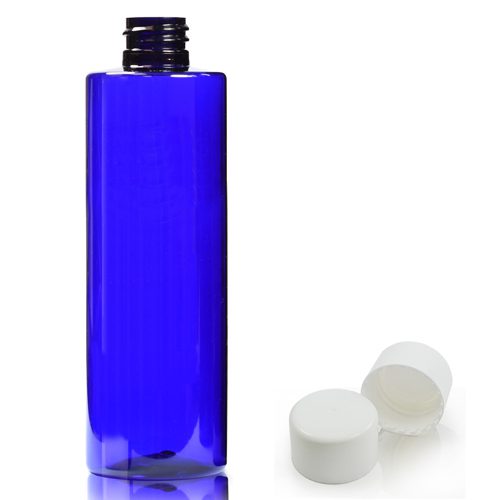 Our 250ml Blue Plastic Bottle With Smooth White Cap is available exclusively from Ampulla Packaging for delivery across the UK and Europe. This product is made from blue PET plastic – a fantastic alternative to glass, thanks to the brilliance of its finish. Each bottle is supplied with a white smooth screw cap for robust storage of your bottle contents.