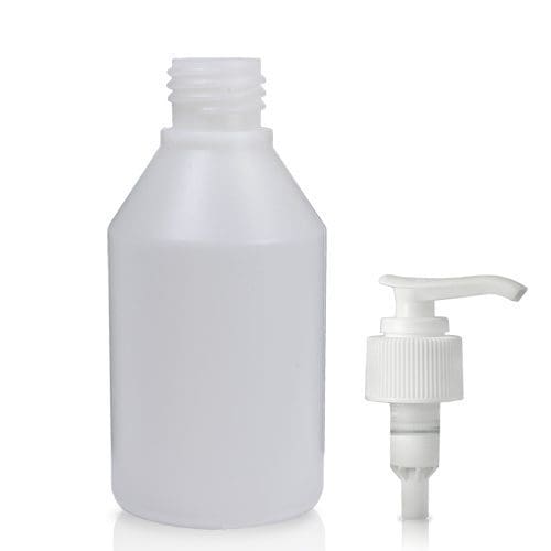 The 150ml HDPE Bottle is compatible with our 24mm caps, which include lotion pumps (which this listing includes), screw caps, spout caps, flip-top caps, disc top caps, glossy lotion pumps, atomiser sprays, glossy atomiser sprays and child-resistant caps. This bottle is available as a bundled product with all these other cap options, but you also have the option to buy these caps separately if you so wish.