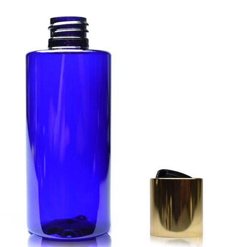 100ml Cobalt Blue Plastic Bottle With Gold Disc Cap