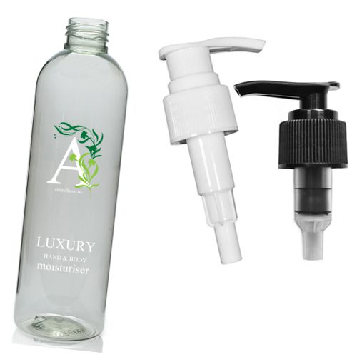 The 250ml rPET Boston Moisturiser Pump Bottle is a stylish bottle and cap combination that’s suitable for a wide range of products. The bottle is made from recycled PET, which is both shatterproof and lightweight, creating a bottle that’s a fantastic alternative to glass. It’s also fully recyclable, so you can create a more sustainable supply chain. The lotion pump lid screws on to the bottle neck, and allows controlled dispensing of many different products. Apply product information labels and company branding to the surface of your bottle to make it stand out.