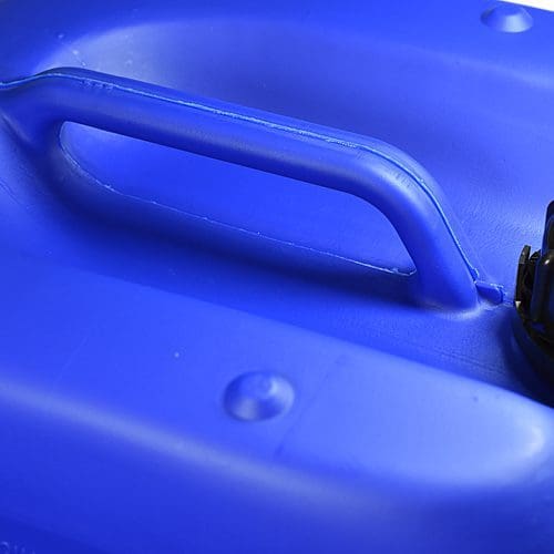 The 20L UN Blue Stackable Jerry Can With Din61 T/E Cap from Ampulla. The container is manufactured from the highest quality high-density polyethylene (HDPE) plastic, resulting in a lightweight, robust can. The striking blue colour and large flat sides offer the perfect blank canvas for your company branding and labelling.Â